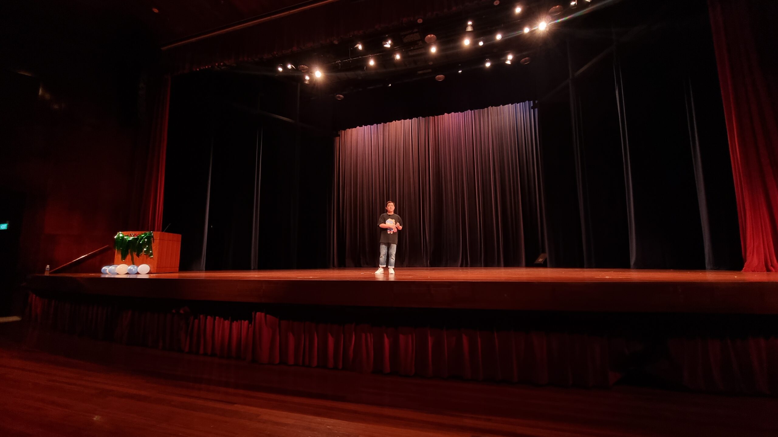 This speech competition was not something miraculously spawned out of thin air, but rather organised by the language ambassadors of Semester 1. Crowd control ensured the audience were ushered to their respective seatings; Aesthetics decorated the venue with baby blue balloons, to verdant plastic seaweed spread across the stage; Backstage crew verified equipment integrity so contending champions can deliver their speech without a hitch; and lastly the MCs of the competition prepared an entertaining programme flow for the crowd to enjoy making sure every item is completed within the allocated time.